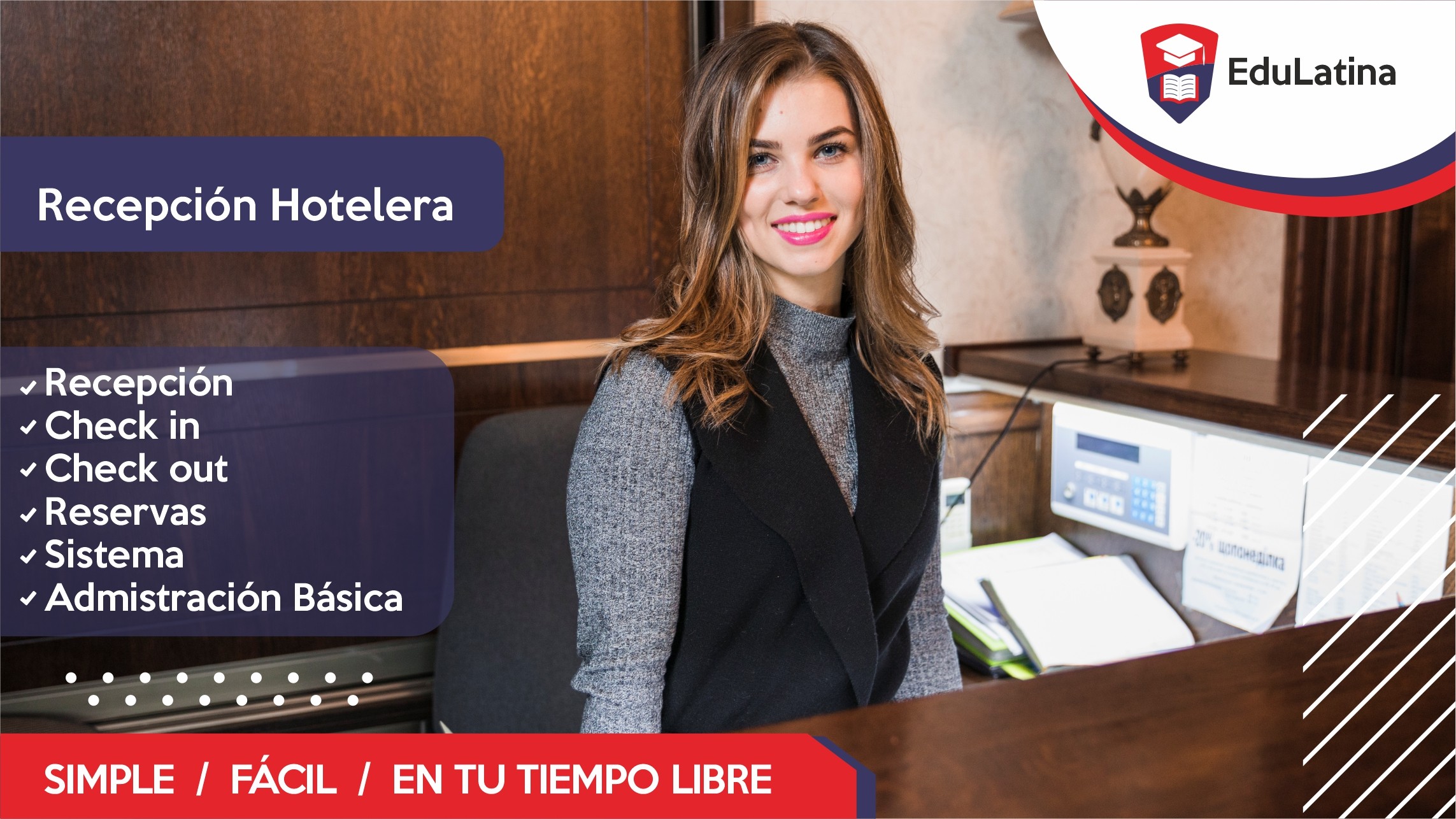 Convertite en la cara visible de la industria hotelera y turística. Este curso te prepara para desempeñarte profesionalmente en la recepción de hoteles, hostels, apart-hoteles y establecimientos turísticos. Aprenderás técnicas de atención al huésped, manejo de sistemas de reservas y check-in/check-out, gestión de quejas y resolución de conflictos, coordinación con otros departamentos del hotel, y protocolos de servicio de excelencia. Además, dominarás el manejo de software hotelero (PMS), facturación, control de cajas y procedimientos de seguridad. El curso incluye formación en comunicación efectiva, inglés básico hotelero y conocimientos sobre turismo en Argentina para asesorar a huéspedes. Perfecto para quienes buscan ingresar a una industria en constante crecimiento con múltiples oportunidades laborales en hoteles, resorts, cruceros y emprendimientos turísticos de todo el país.